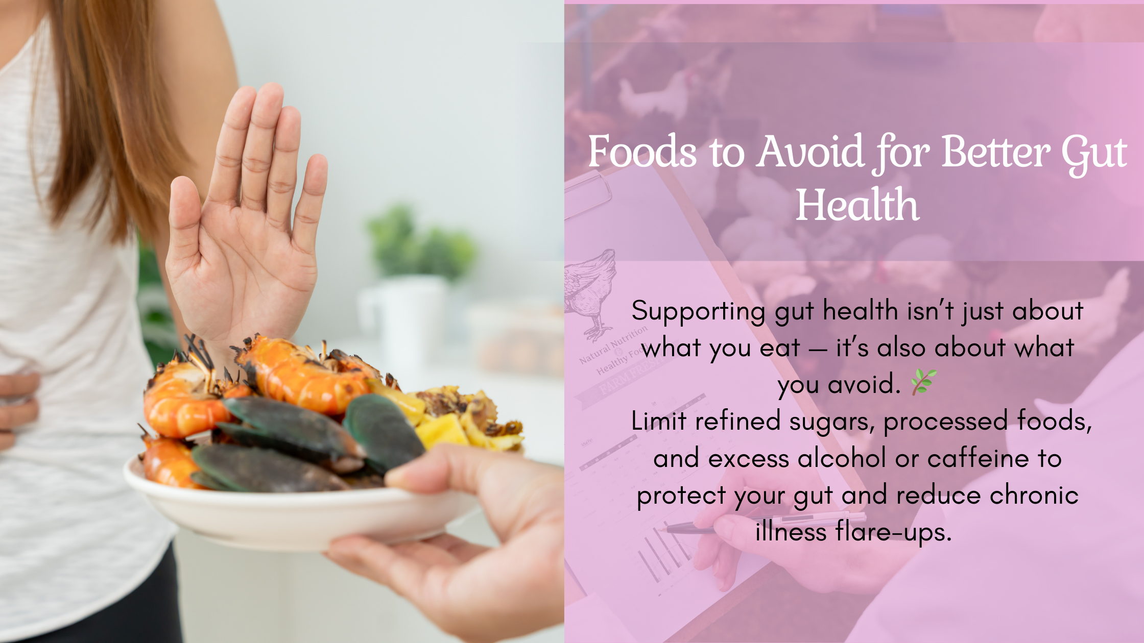 Being mindful of what foods to avoid can be just as impactful as what foods to include in your diet, helping to support gut health and reduce the impact of chronic illness symptoms.